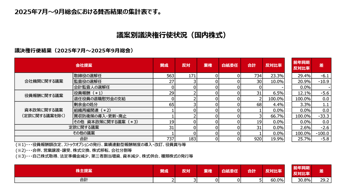 - 議決権行使結果(2020年7月-2020年9月)