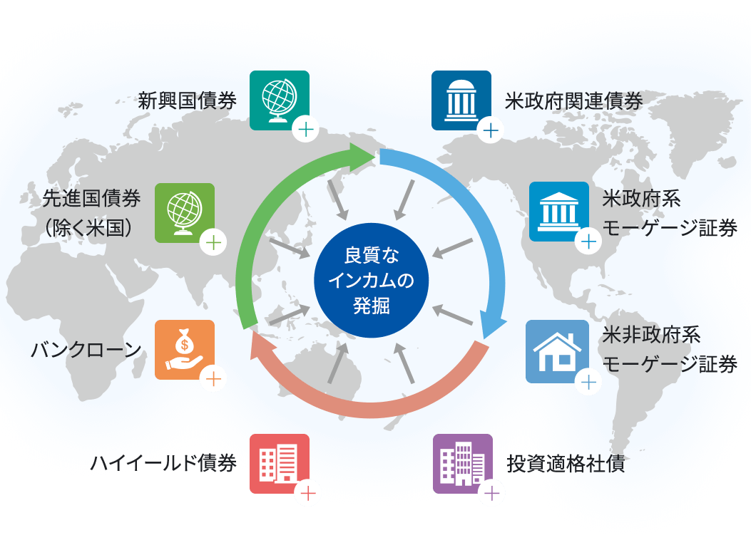 世界中の多様な債券セクターに散在する、