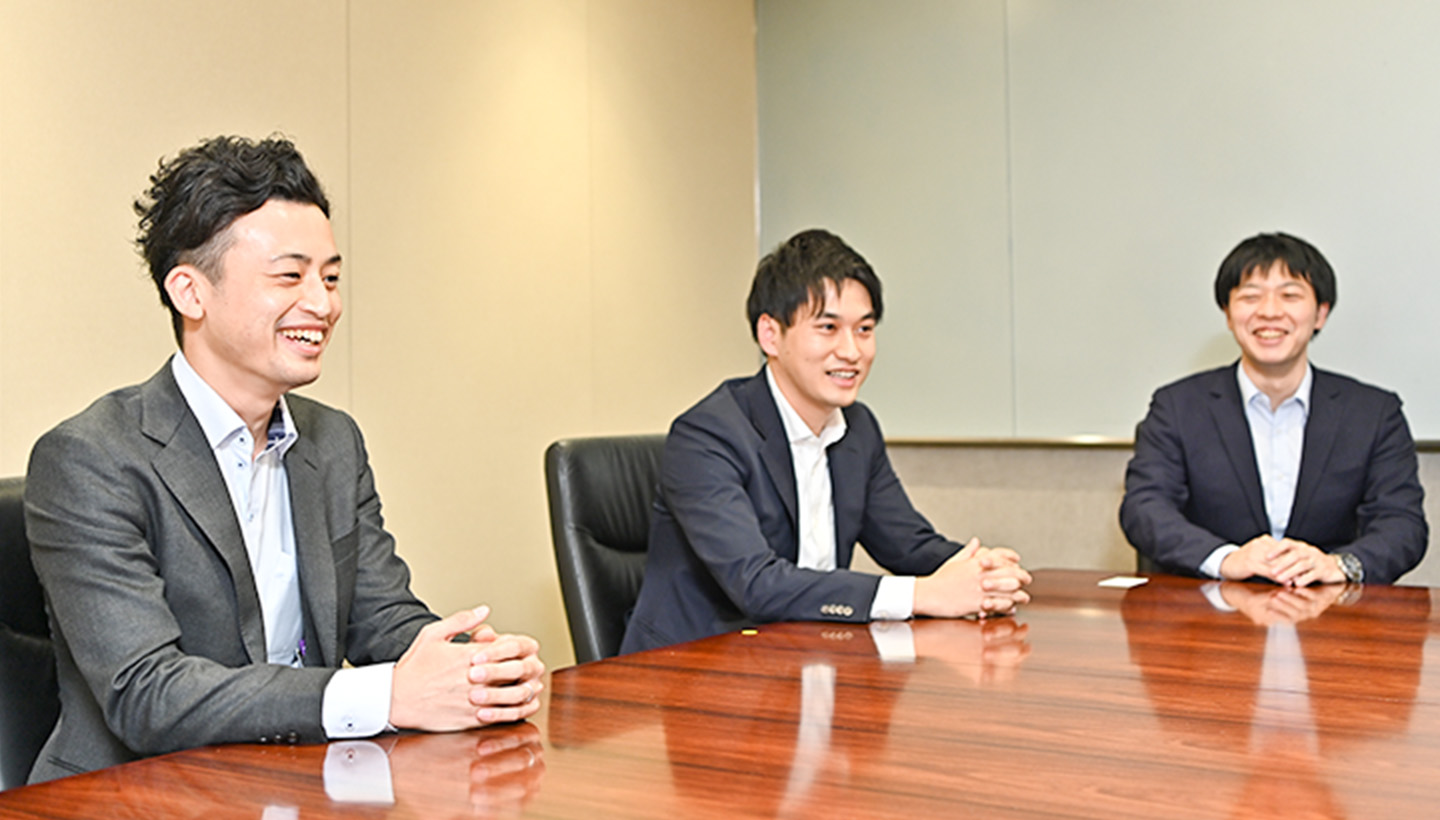 当社では、育児休業の取得が「当たり前」となる職場環境づくりを目指し、さまざまな取り組みを進めています。育児休業(以下、育休)取得のメリット、取りやすい職場環境、自身にどのような変化があったかなどをテーマに、男性社員が話し合いました。