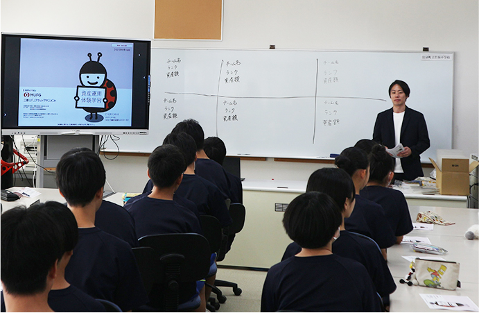 生徒の皆さんが真剣な表情で授業に臨み、資産形成に関する知識を吸収しようとする姿勢に頼もしさを感じたと同時に、将来に向けて「お金」と向き合う意識が芽生えていることに、大きな可能性を感じました。徐々に将来の選択肢が広がってくる中学生という時期だからこそ、この学びが将来のライフプランを考えるきっかけになれば嬉しく思います。
